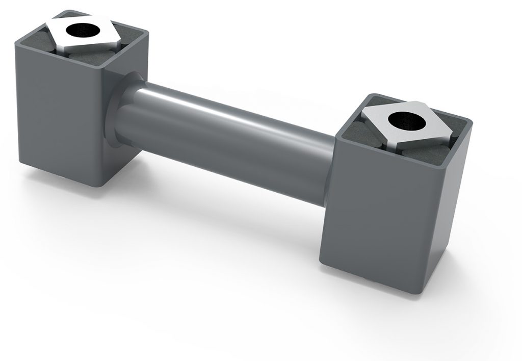 The RESATEC single rocker type DB is used in crank shaft driven conveying, screening, sorting plants, etc. as a guided single mass system for trough support. The single rockers have standardized center distances and can be used for oscillation angles up to +/- 6°. The distance between the individual rockers should not exceed 1.5m. Type C is designed for central mounting and types F and FM for flange mounting. Customer-specific designs are possible.